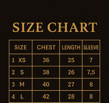 Please check the size chart carefully before placing your order. Chest and length measurements are provided in inches for accurate fitting. Choose your size based on your body measurements, not your usual brand size.